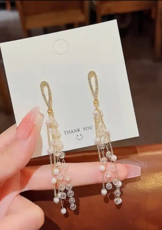 Korean Earrings. Party Wear. Skin Safe.Keep away from Chemicals, Sanitizers , alcohol , perfumes. Gently wipe with a dry cloth after every use. Keep in the ziplock bag provided by us.